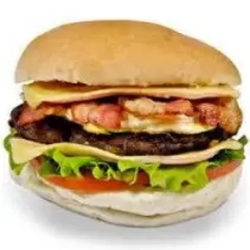 Hambúrguer de Carne Bovina, Ovo, Bacon, Cheddar, Maionese, Tomate e Alface