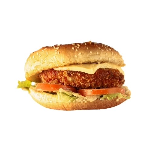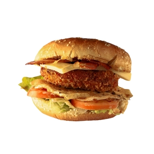Hambúrguer de Frango Crocante, Cheddar, Ovo, Tomate, Alface e Molho de Alho